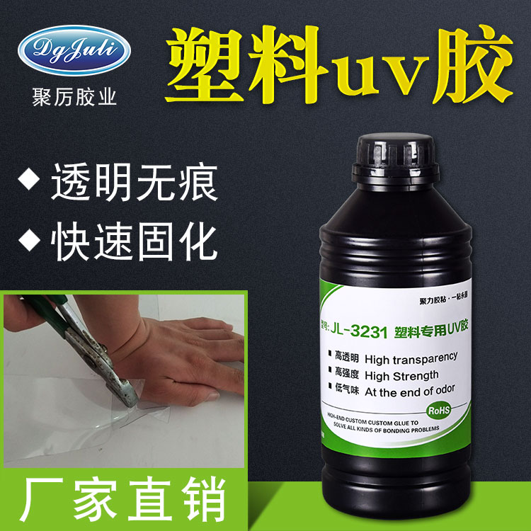 聚厲3231UV膠,采用單組分設(shè)計(jì).依靠紫外光照射固化,只需1-2分鐘即可快速固化,特有的操作方便.使用簡(jiǎn)單,對(duì)于粘接亞克力等透明材質(zhì)可以達(dá)到無(wú)痕跡的效果